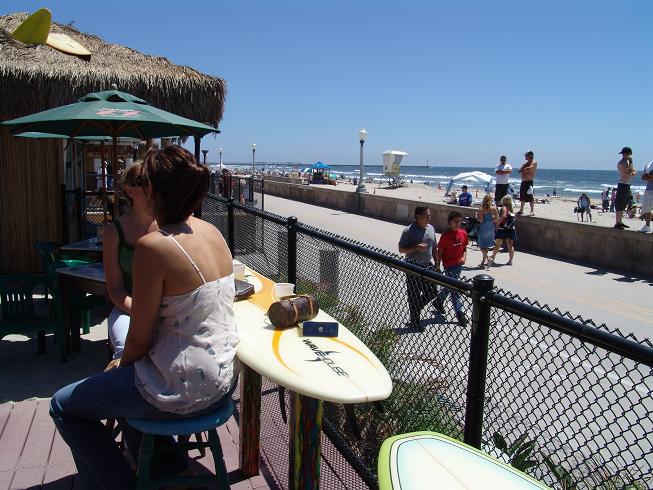 Lunch at the Wave House and watching great stunts on a 10 foot wave in Mission Beach San Diego....priceless! Photo by Mission Beach Online.com